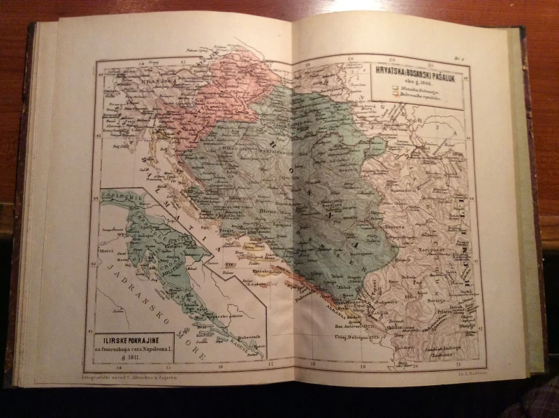 KLAIĆ VJEKOSLAV, ATLAS ZA HRVATSKU POVJESTNICU, 1888. SA 6 ZEMLJOPISNIH KARATA