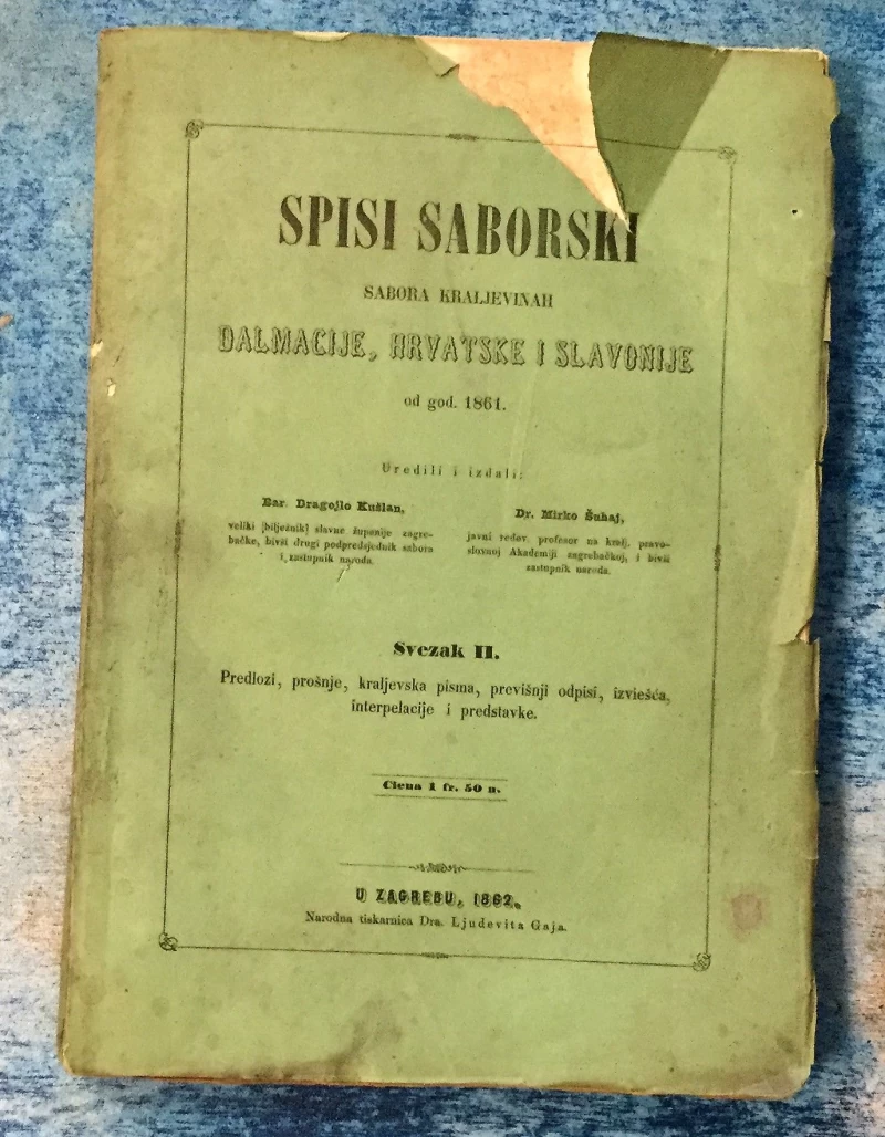 KUŠLAN I ŠUHAJ : SPISI SABORSKI SABORA KRALJEVINAH DALMACIJA HRVATSKE I SLAVONIJE OD GODINE 1861.
