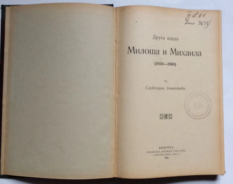 SLOBODAN JOVANOVIĆ, DRUGA VLADA MILOŠA I MIHAJLA, BEOGRAD, 1923.