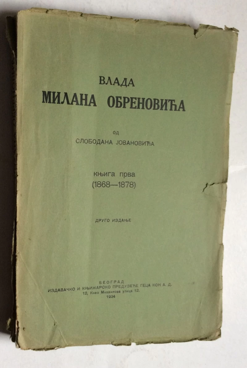 SLOBODAN JOVANOVIĆ, VLADA MILANA OBRENOVIĆA, KNJIGA PRVA, BEOGRAD, 1934.