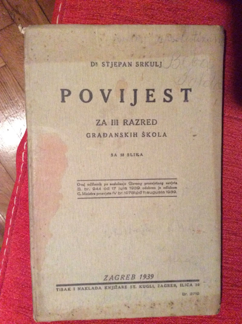 STJEPAN SRKULJ, POVIJEST ZA III. RAZRED GRAĐANSKIH ŠKOLA SA 58 SLIKA 1939.
