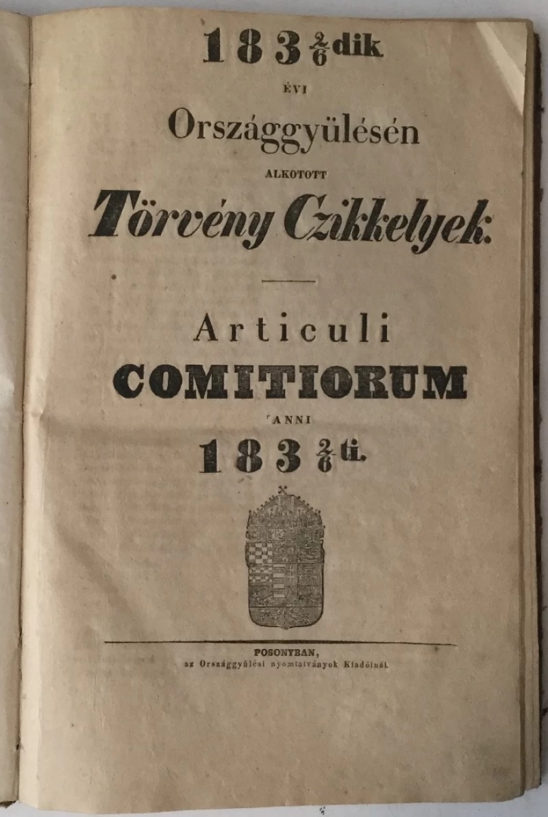 Nepoznati autori: 1832/36 dik Evi Orszaggyülesen Alkotott Törveny-Czikkelyek Articuli Comitiorum Anni 1832/36ti