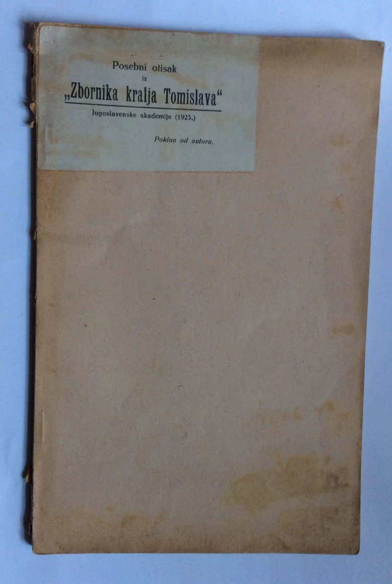 Nepoznati autori: GABRIEL MANOJLOVIĆ, ZBORNIK KRALJA TOMISLAVA, POSEBNI OTISAK, ZAGREB, 1925