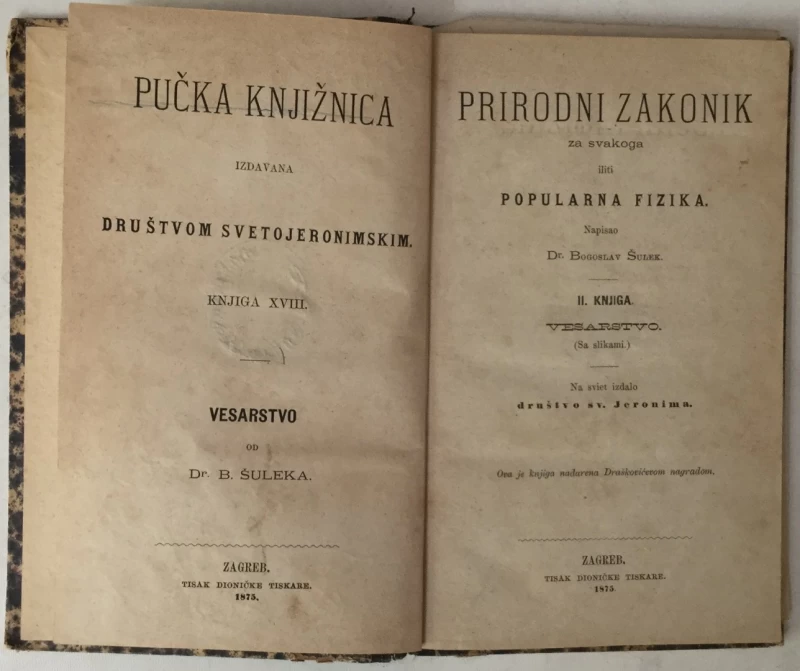 BOGOSLAV ŠULEK: PRIRODNI ZAKONIK ZA SVAKOGA ILITI POPULARNA FIZIKA, II. KNJIGA-VESARSTVO