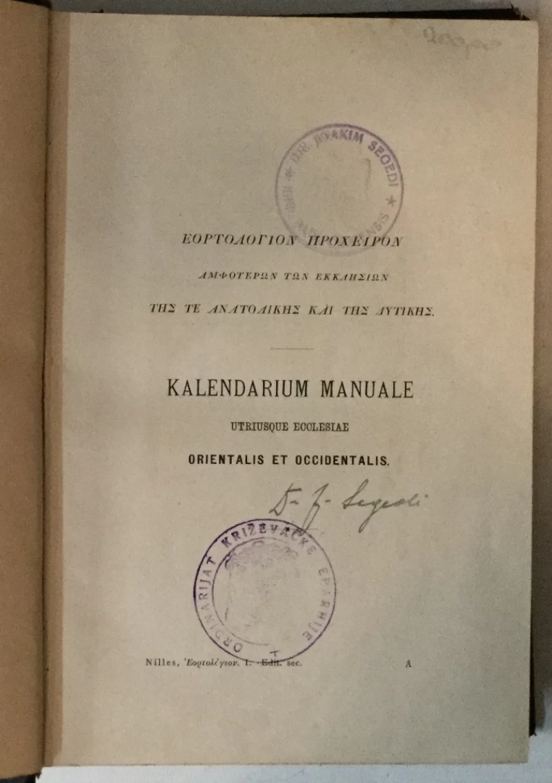 Nepoznati autori: Eortologion prokheiron amphoteron ton ekklesion tes anatolikes kai tes dytikes - Kalendarium manuale utriusque ecclesiae orientalis et occidentalis