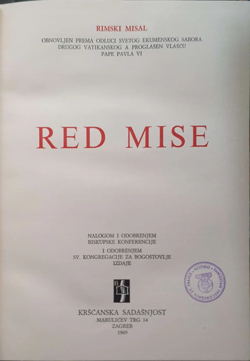 Knjiga sadrži Red mise obnovljen prema odlukama Drugog vatikanskog sabora.