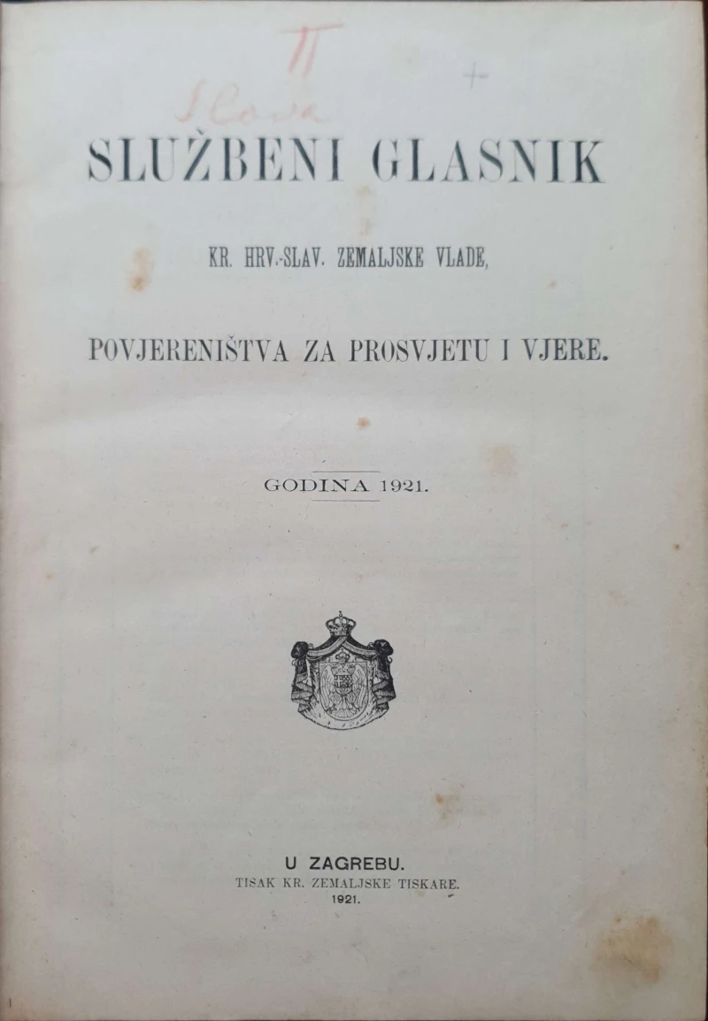 Službeni glasnik Kraljevske hrvatsko-slavonske zemaljske vlade - godina 1921
