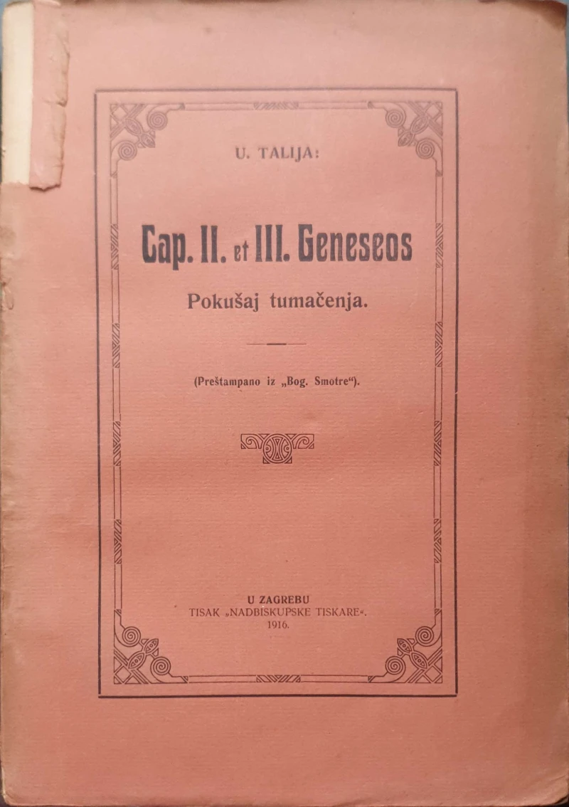 U. Talija: Cap. II. et III. Geneseos - Pokušaj tumačenja