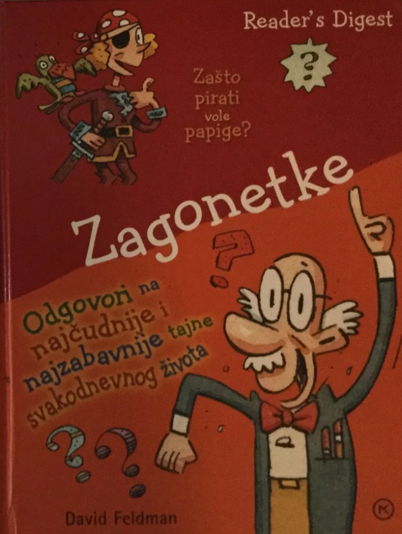 Odgovori na najčudnije i najzabavnije tajne svakodnevnog života Može li se pauk zaplesti u mrežu drugo pauka? Zašto se pingvinima ne smrznu noge? Zašto klavir ima 88 tipki? Zašto su oceani slani? U knjizi Zagonetke otkrit ćete više od 500 odgovora na takva i slična pitanja iz svakodnevnog života. Autor knjige David Feldman pravi je stručnjak u odgovaranju na neodgovorivo. Smijat ćete se od srca dok ćete u ovoj domišljatoj zbirci odgonetavati informacije koje enciklopedije i priručnici obično zanemaruju te konačno doznati čudne, ali istinite zanimljivosti i neobične činjenice o prirodi, ljudskome tijelu, sportu, znanosti, povijesti, hrani…