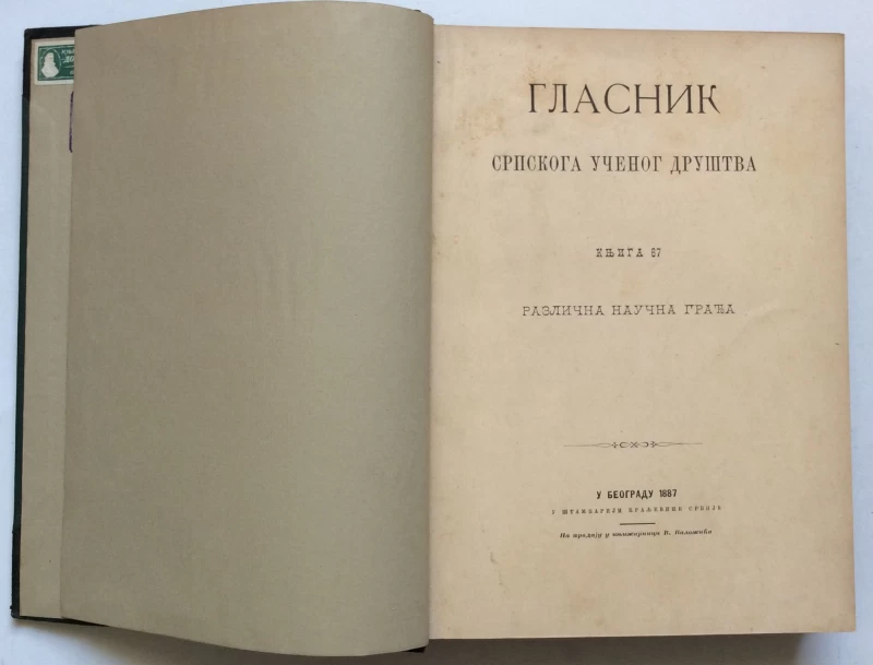 GLASNIK SRPSKOG UČENOG DRUŠTVA, KNJIGA 60, BEOGRAD, 1885