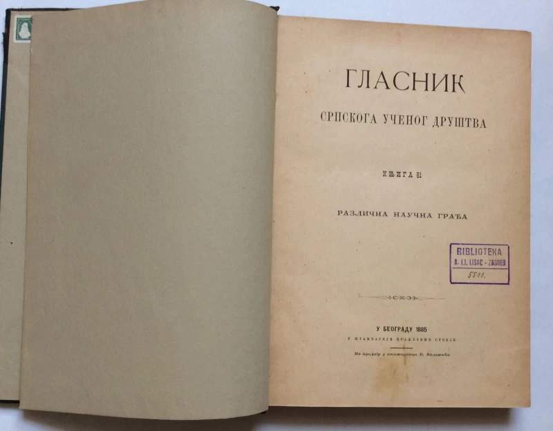 GLASNIK SRPSKOG UČENOG DRUŠTVA, KNJIGA 61, BEOGRAD, 1885