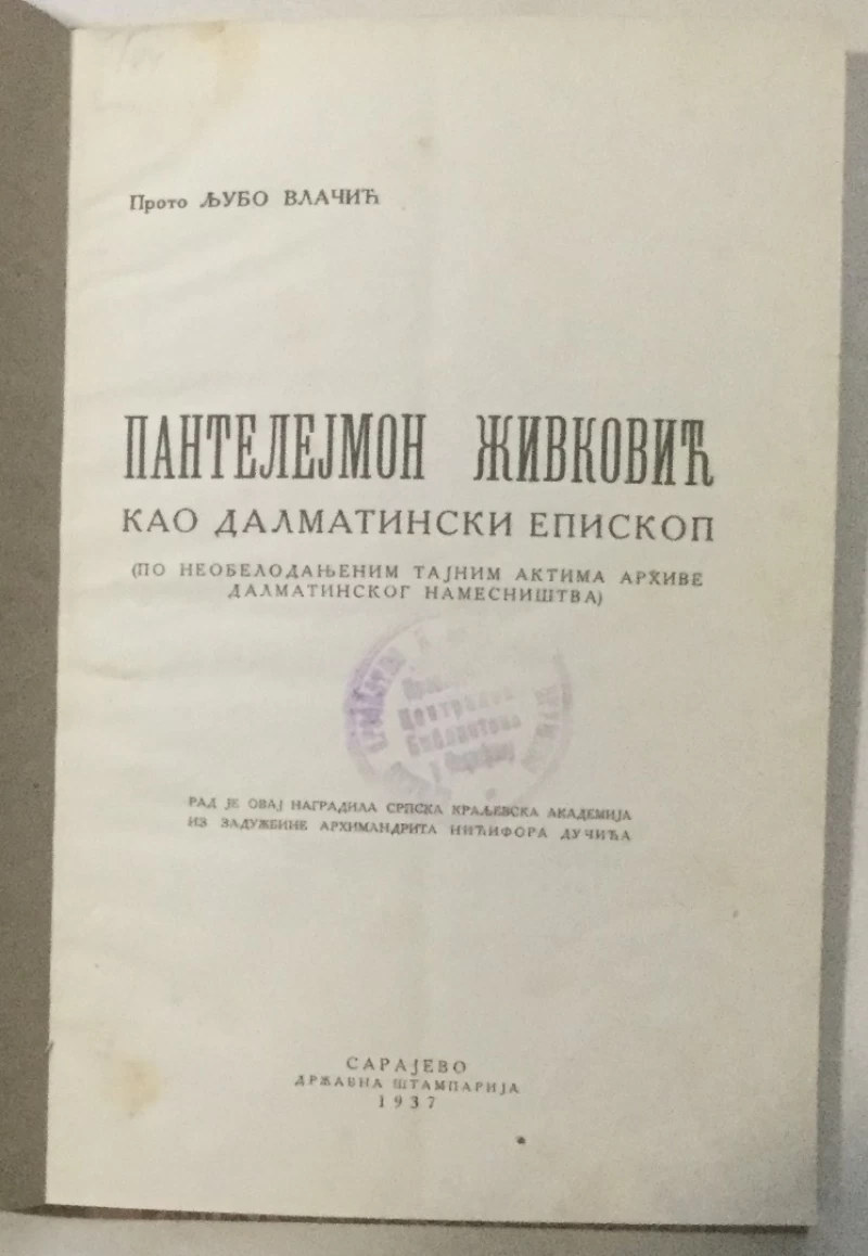 Ljubo Vlačić: Pantelejmon Živković kao dalmatinski episkop