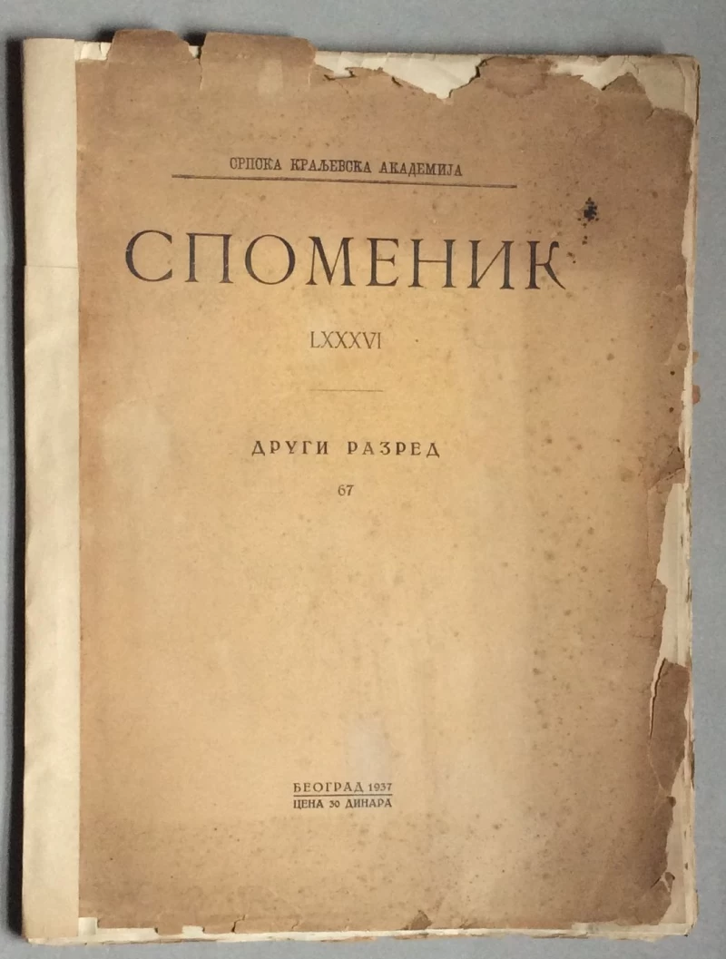 SPOMENIK, SRPSKA KRALJEVSKA AKADEMIJA, BROJ 86, REGISTAR MESTA, REGISTAR AUTORA, BEOGRAD, 1937