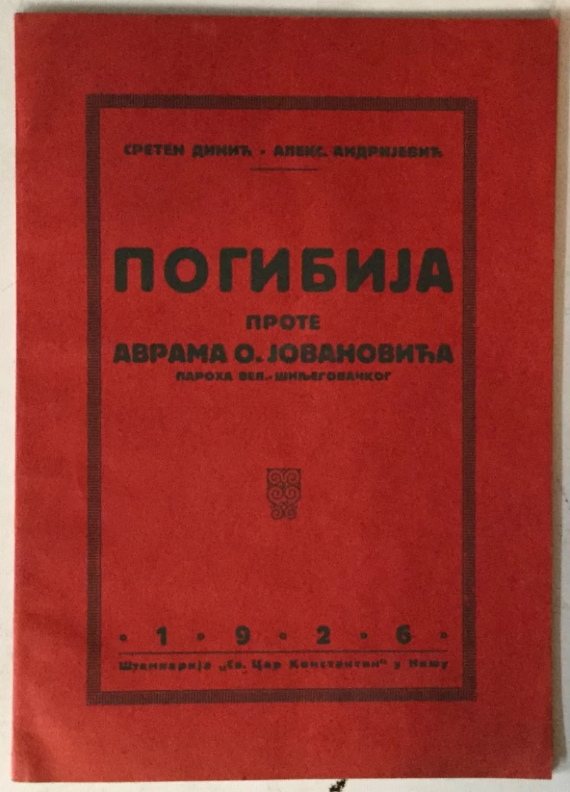 Dinić Aleksandar Sreten: Sreten Dinić, Aleksandar Andrijević: Pogibija prote Avrama O. Jovanovića