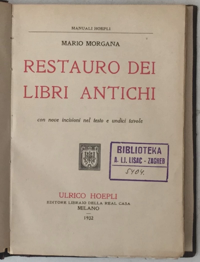 • Izdavač: Ulrico Hoepli, Milano