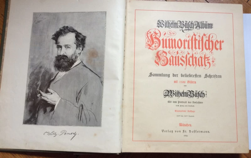 Nepoznati autori: WILHELM BUSCH ALBUM, HUMORISTISCHER HAUSSCHATZ mit 1500 Bildern. , 1908.