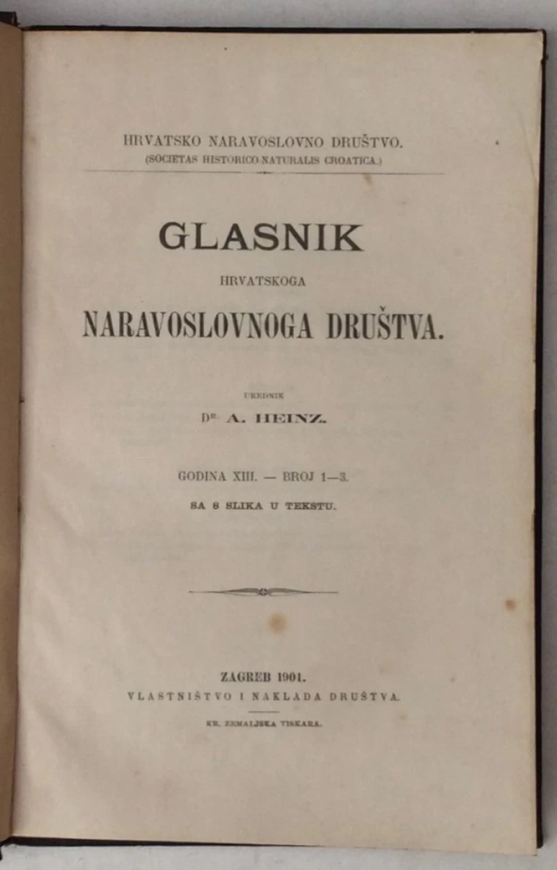 HEINZ: HEINZ : GLASNIK HRVATSKOGA NARAVOSLOVNOGA DRUŠTVA : GODINA XIII BROJ 1-3 BROJ 4-6