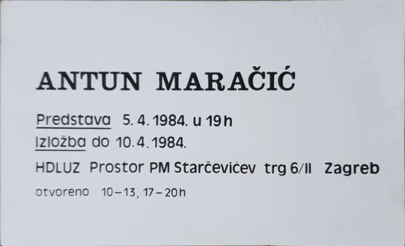 Antun Maračić predstava 05.04.1984 izlozba do 10.04.1984