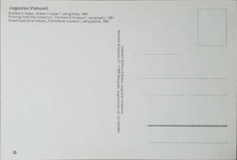 Nepoznati autori: Jugoslav Vlahović: Grafika iz mape Slikari i voajeri, serigrafija 1981