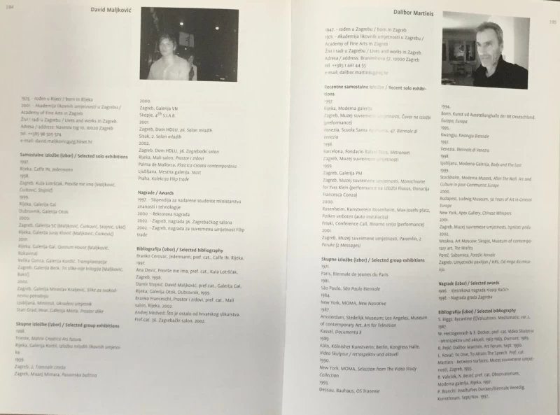 Iva-Matija Bitanga, Željko Blaće, Ivan Bura, Marijan Crtalić, Ivan Faktor, Ivan Fijolić, Alen Floričić, Ivana Franke, Vladimir Frelih, Leo Vukelić, Danko Friščić, Davor Mezak, Frane Rogić, Tomislav Gotovac, Igor Grubić, Nicole Hewitt, Sanja Iveković, Ivana Keser, Aleksandar Battista Ilić, Zlatko Kopljar, Ivan Kožarić, Andreja Kulunčić, Labin Art Express, Kristina Leko, David Maljković, Dalibor Martinis, Ivan Marušić Klif, Dan Oki, Ana Opalić, Goran Petercol, 81 Platforma 9, Renata Poljak, Tomo Savić-Gecan, Sandra Sterle, Mladen Stilinović, Ana Šerić, Goran Škofić, Slaven Tolj, Silvio Vujičić