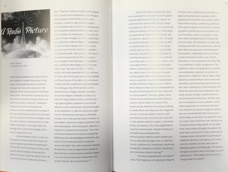 Izložba interaktivno povezuje umjetnost, kulturu, politiku, društvene pojave i prostor – ilustrirajući mrežu društvenosti i transindivdualnosti – kaže R. Marcoci. – Osim izložaka tu su i stavovi umjetnika prema društvu i umjetnosti. Pogled je to očima 35 umjetnika i umjetničkih skupina grupiran u sedam tema