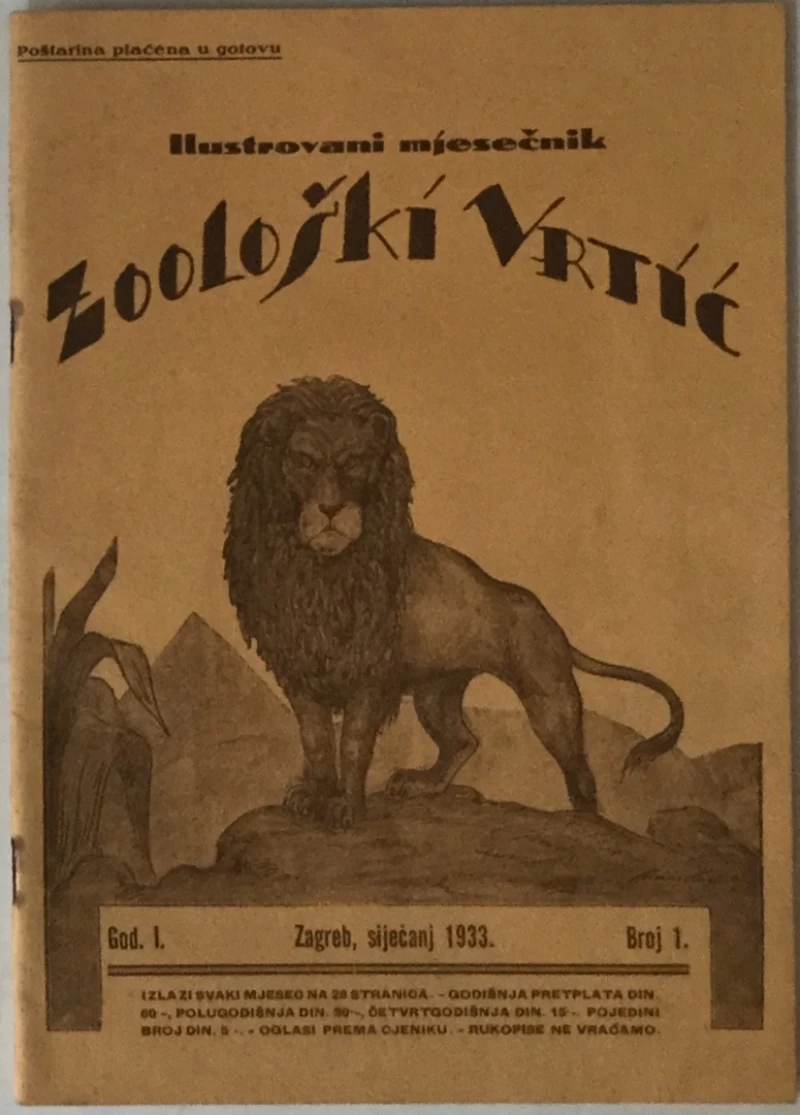 ILUSTROVANI MJESEČNIK : ZOOLOŠKI VRTIĆ GOD. I. Br. 1/1933.