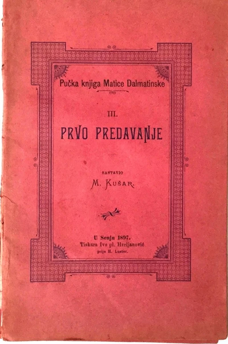 KUŠAR M. : PRVO PREDAVANJE : PUČKA KNJIGA MATICE DALMATINSKE