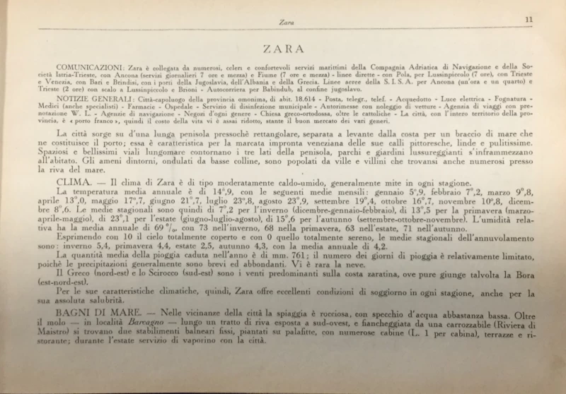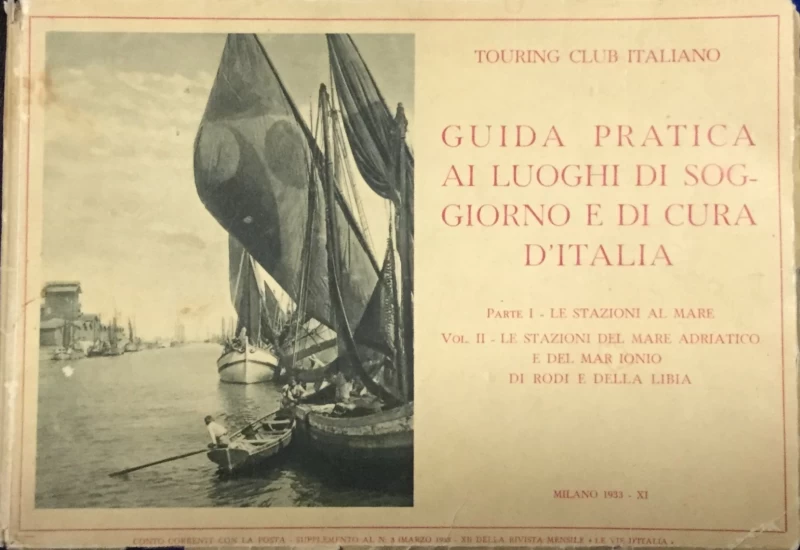 Prvo izdanje. Praktični vodič kroz mjesta boravka i liječenja u Italiji, sastoji se od 5 dijelova. Prvom dio vodiča sadrži:Postaje uz more, Postaje Jadranskog i Jonskog mora, te Rodosa i Libije. Sadrži 34 geografske karate i 51 crno-bijelu ilustraciju. Vodič je objavljen 1933. godine u Milanu