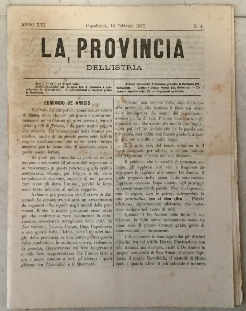 Nepoznati autori: La provincia dell' Istria 4/1887.