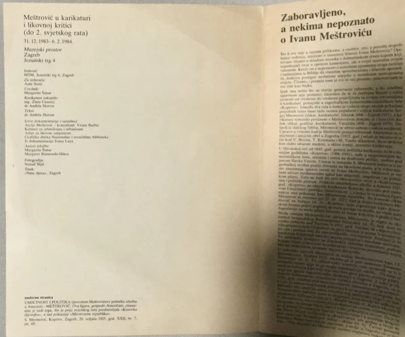 Katalog izložbe iz 1983./84. godine