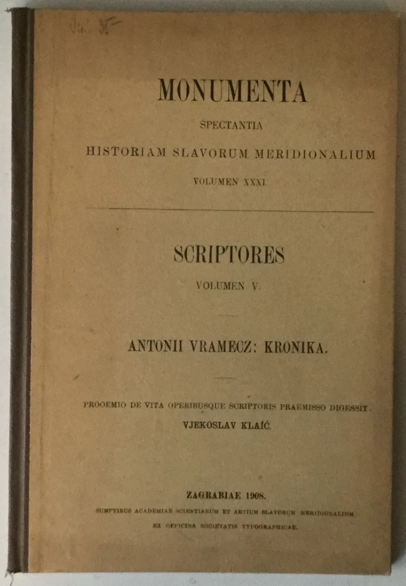Nepoznati autori: Monumenta spectania historiam Slavorum meridionalium volumen XXXI, Scriptores volumen V, Antun Vramec