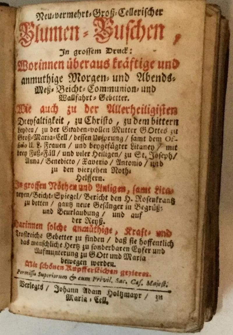 Neu vermehrt Groff Csellerischer Blumen Buschen, stari molitvenik s područja Austrije