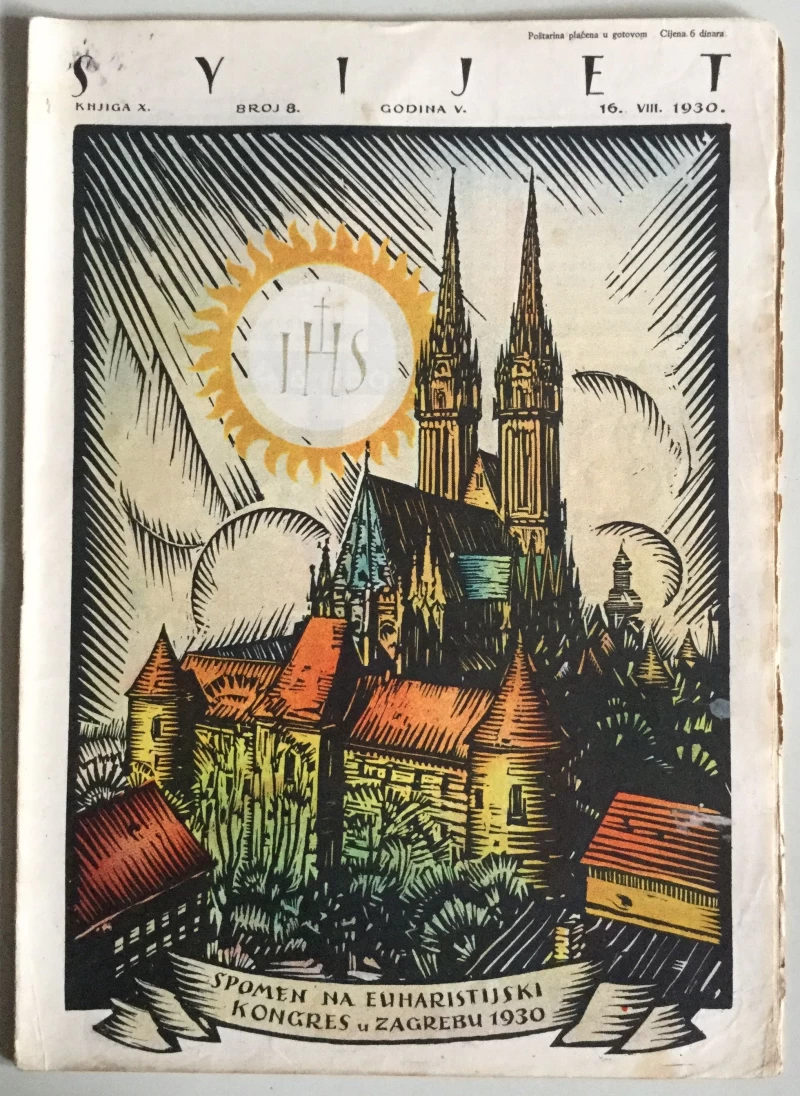 Nepoznati autori: STARI ČASOPIS "SVIJET", KNJIGA X. GODINA V. BROJ 8, 16. VIII.1930 SPOMEN NA EUHARISTIJSKI KONGRES U ZAGREBU 1930