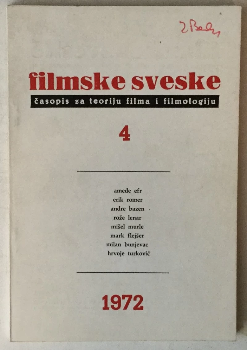 Nepoznati autori: Filmske sveske, Časopis za teoriju filma i filmologiju godina 1972. broj 4