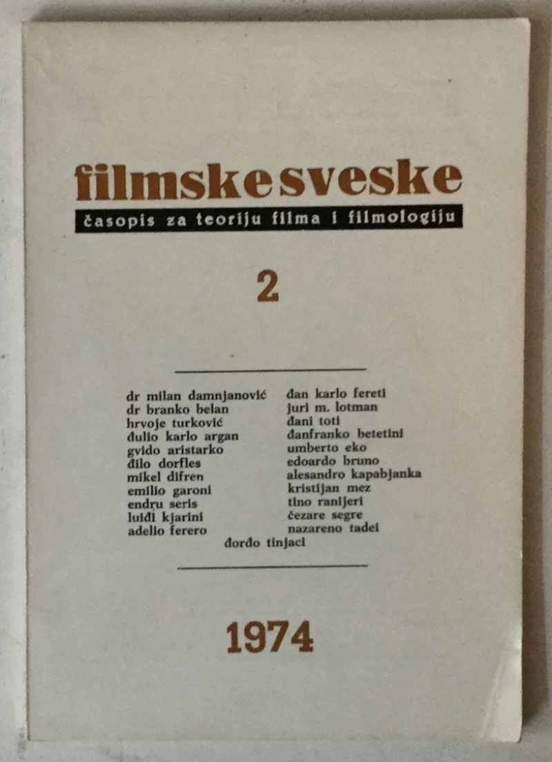 Nepoznati autori: Filmske sveske, Časopis za teoriju filma i filmologiju godina 1974. broj 2