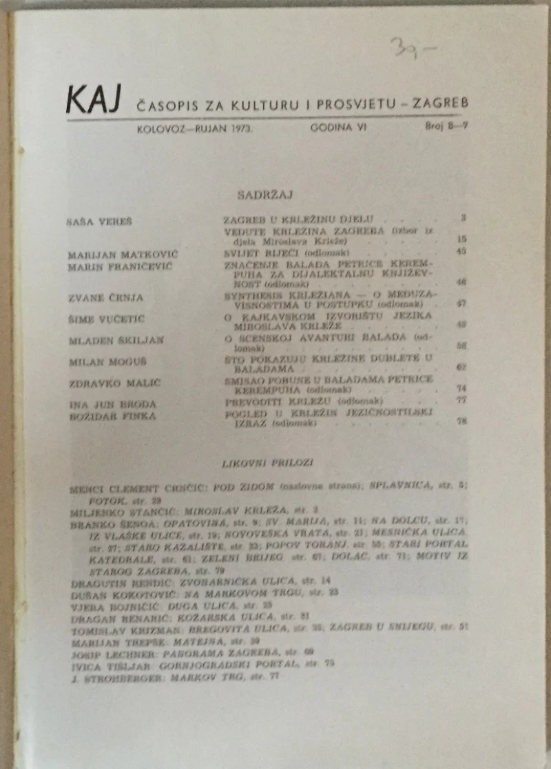 Časopis Kaj 8-9/1973. Miroslav Krleža