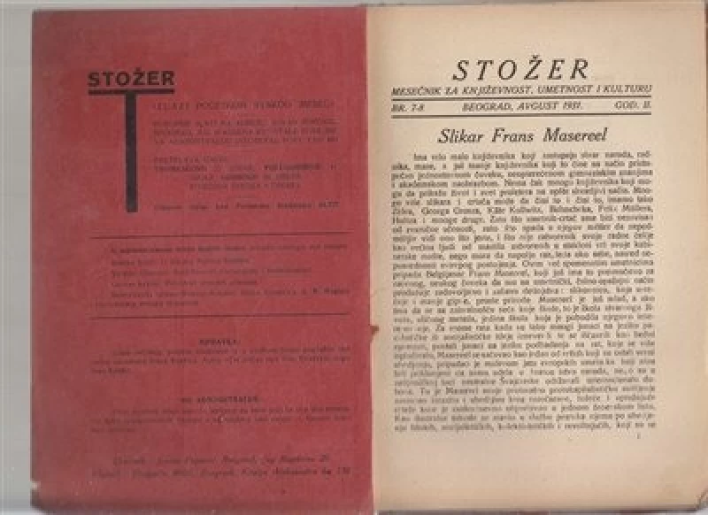 Stožer, dvobroj 7-8. Godina 1931. Urednik Jovan Popović. Pišu –