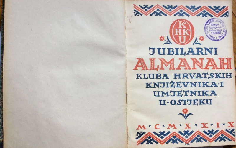 Nepoznati autori: JUBILARNI ALMANAH KLUBA HRVATSKIH KNJIŽEVNIKA I UMJETNIKA U OSIJEKU-1929 . OSIJEK