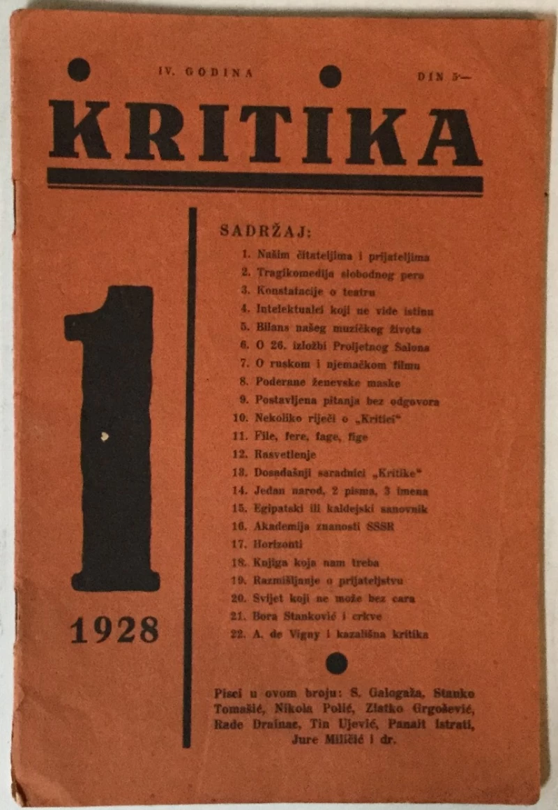 Nepoznati autori: Kritika časopis broj 1/1928.