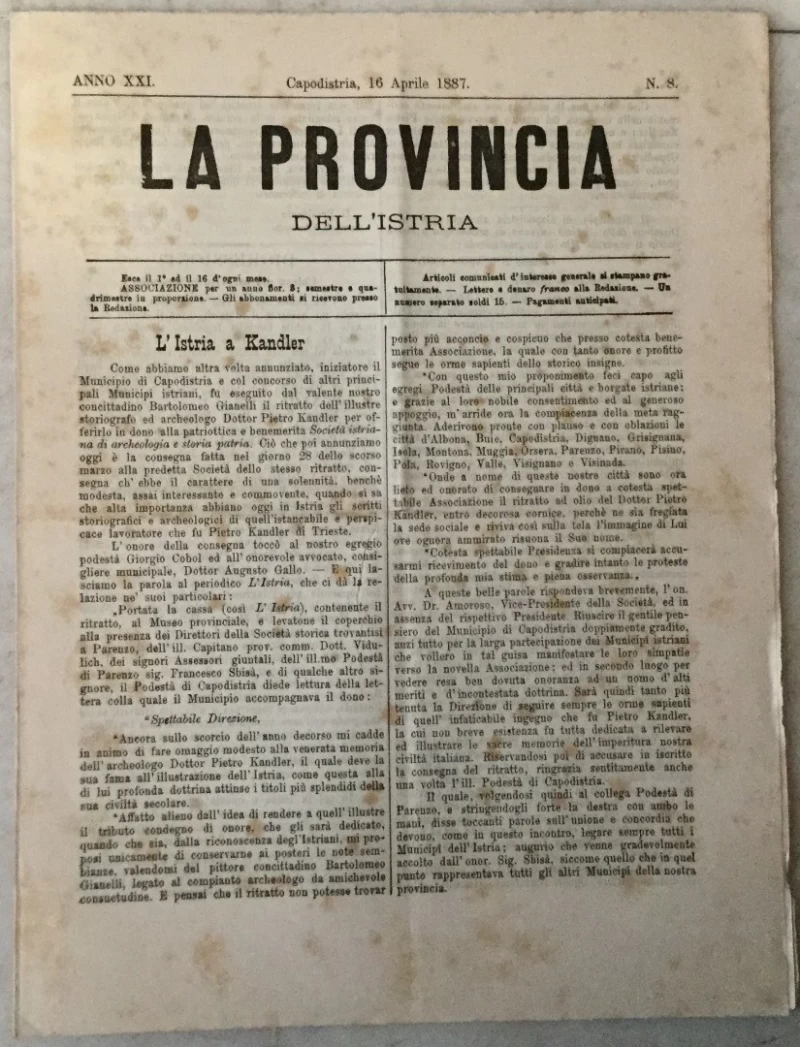 Nepoznati autori: La provincia dell' Istria 8/1887.