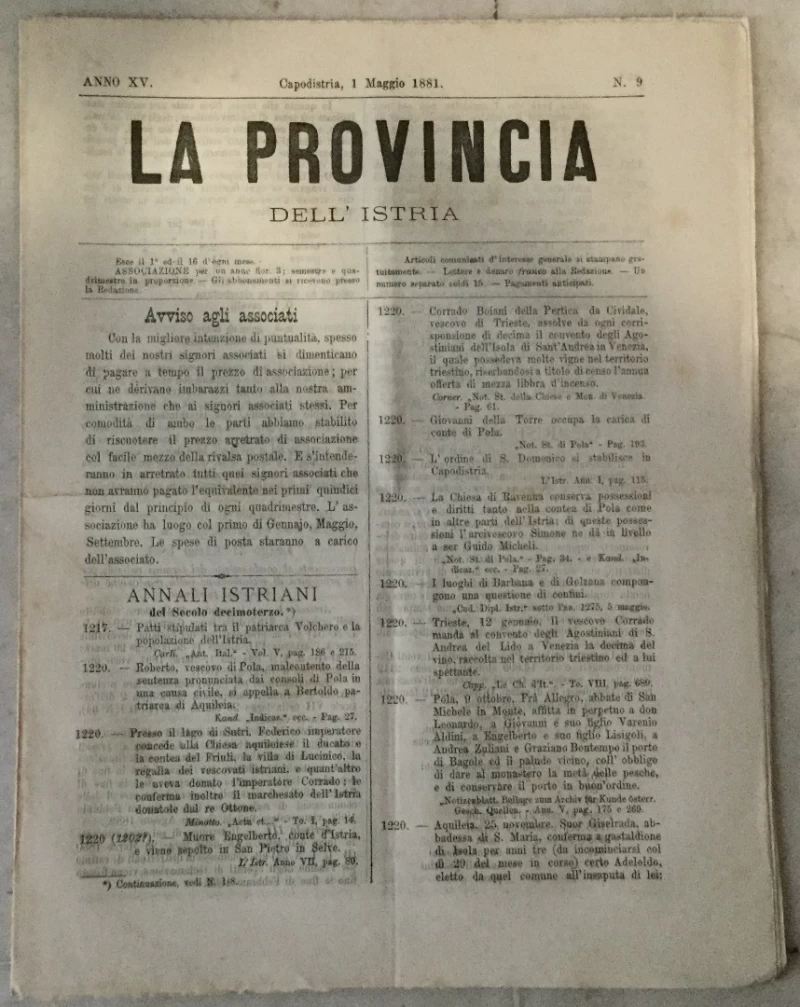 Nepoznati autori: La provincia dell' Istria 9/1881.
