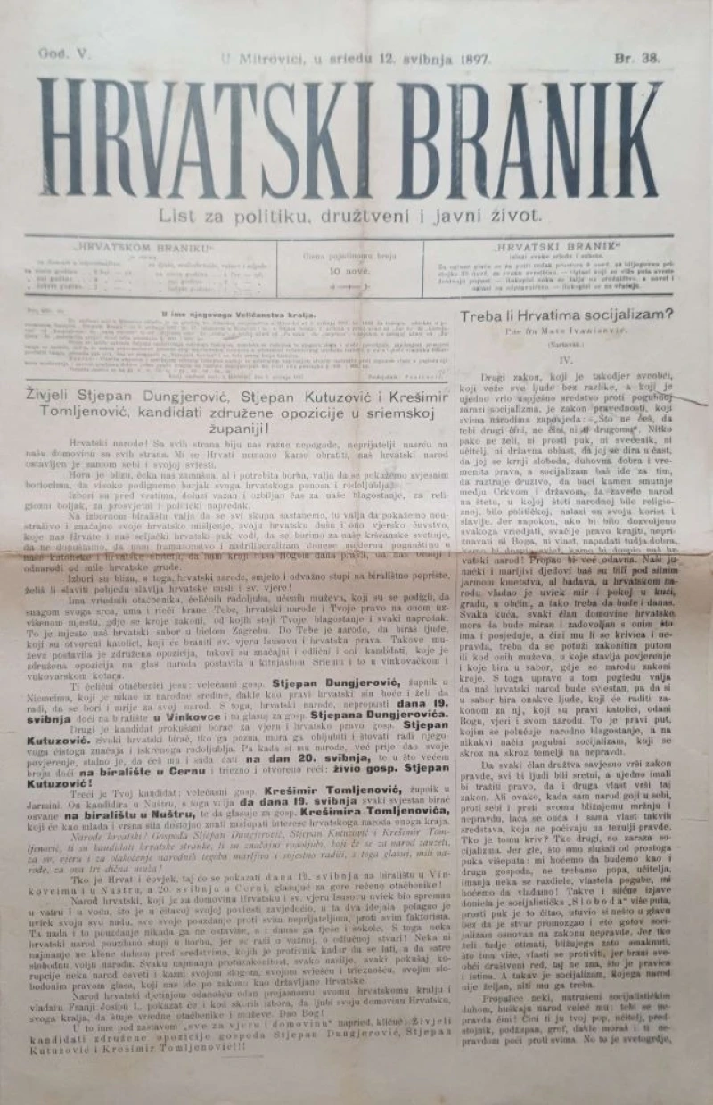 Hrvatski branik: God. V, broj 38/1897