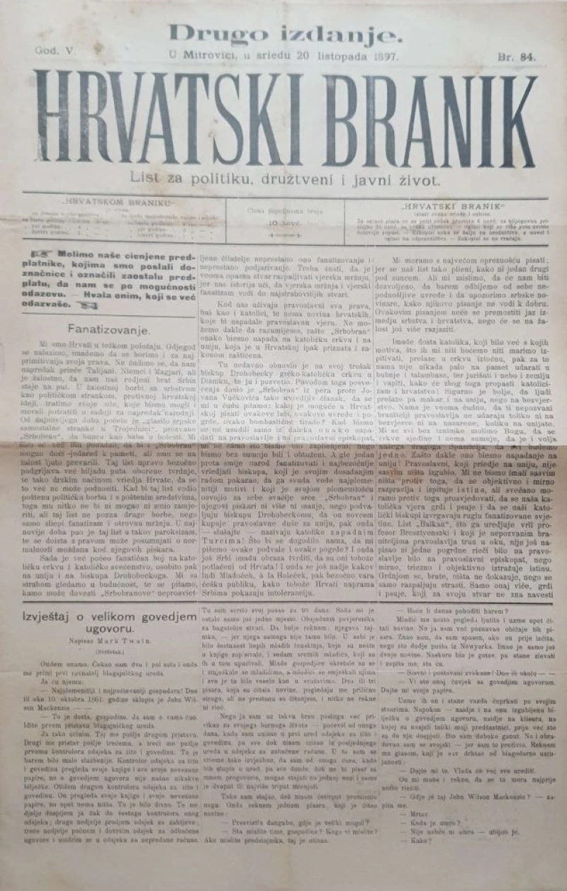 Hrvatski branik: God. V, broj 84/1897
