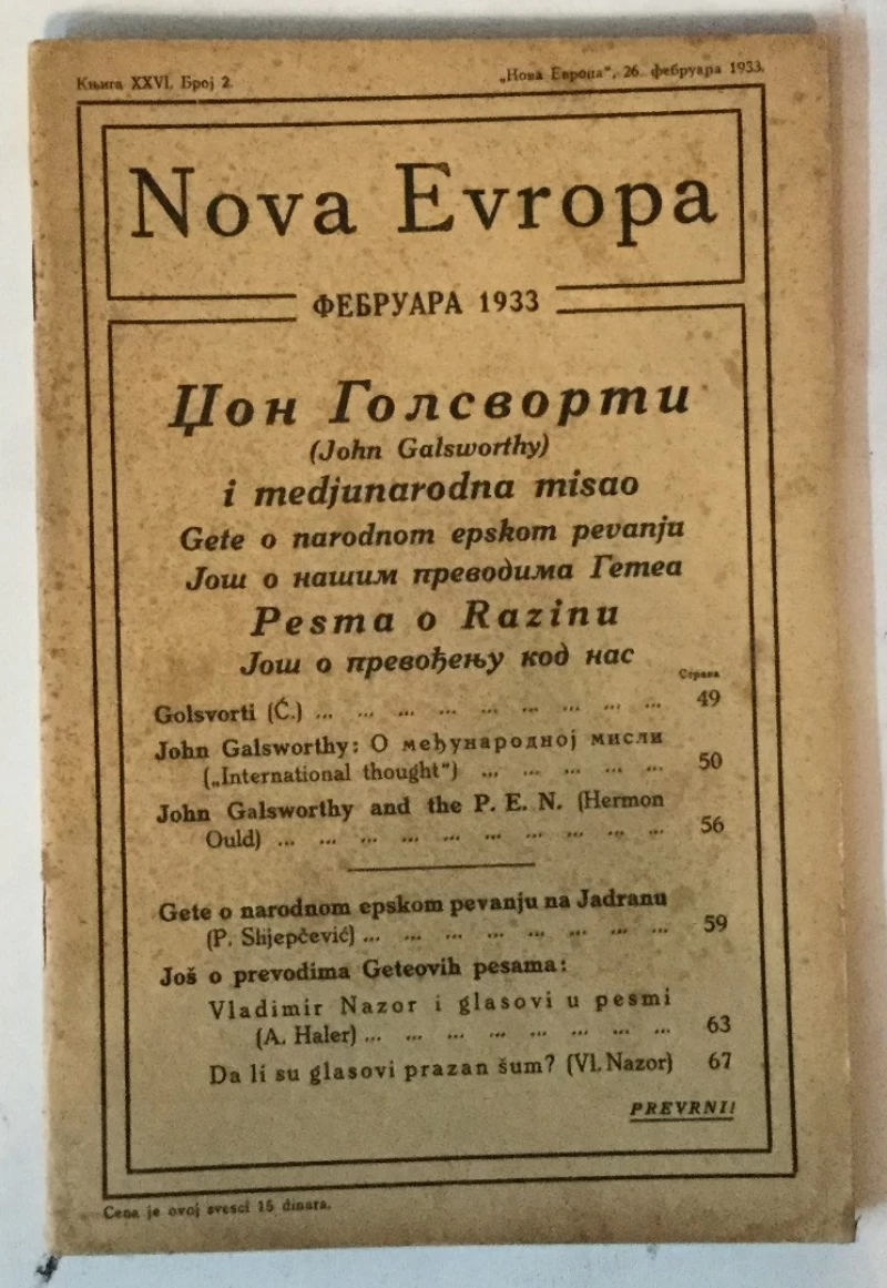 Nepoznati autori: Nova Evropa 2/1933.
