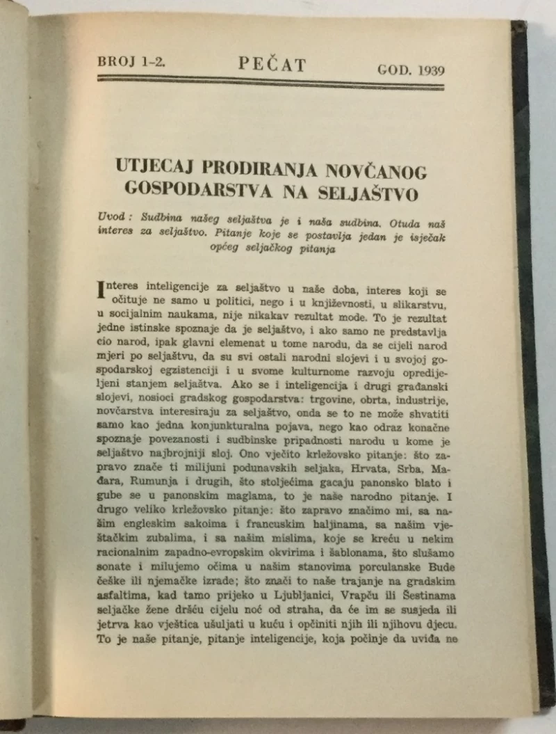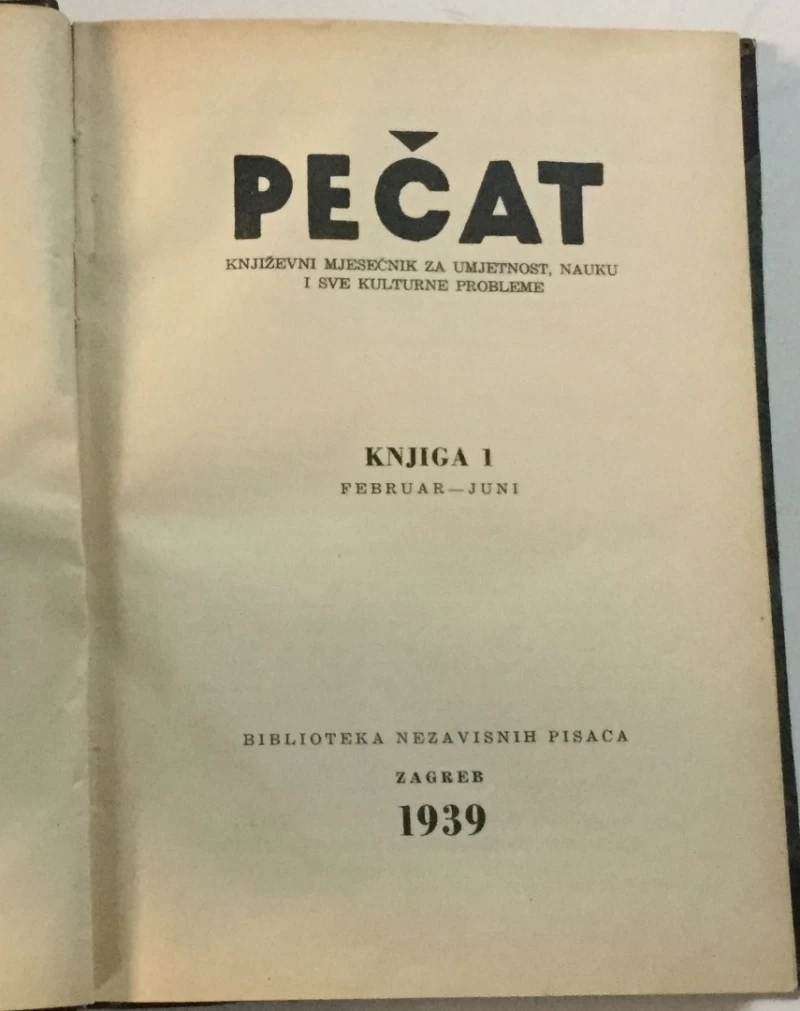 Pečat - Književni mjesečnik za umjetnost, nauku i sve kulturne probleme, knjiga 1 1939. godina