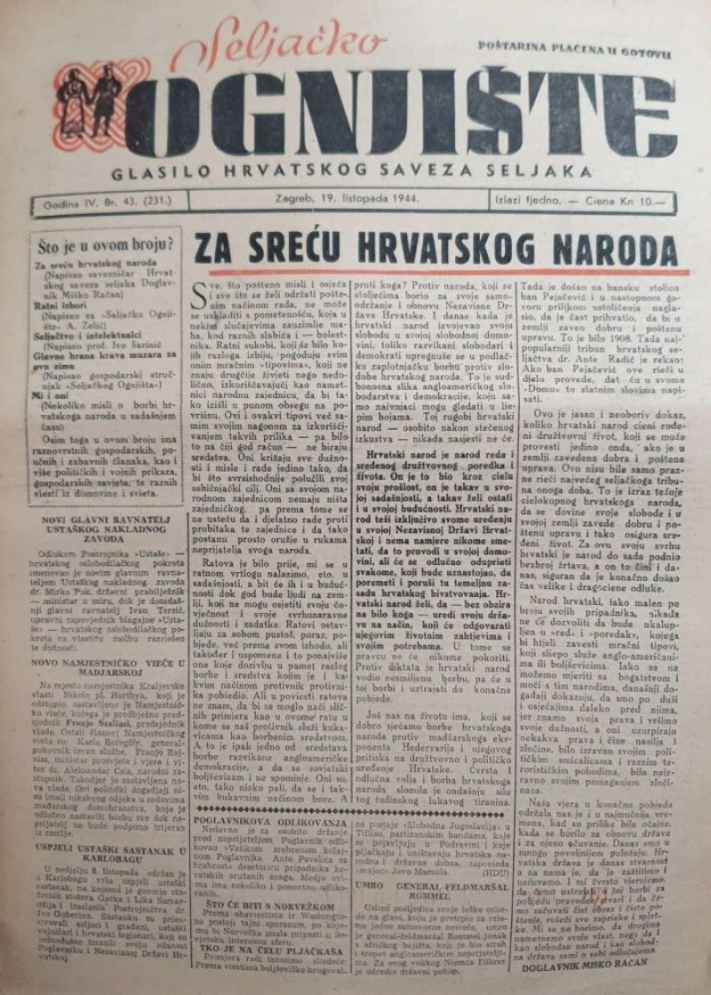 Seljačko ognjište: God. IV, broj 43/1944