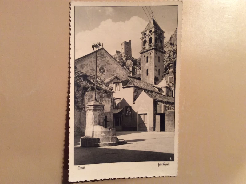 Nepoznati autori: OMIŠ STARA RAZGLEDNICA CRKVA TRG 1938.