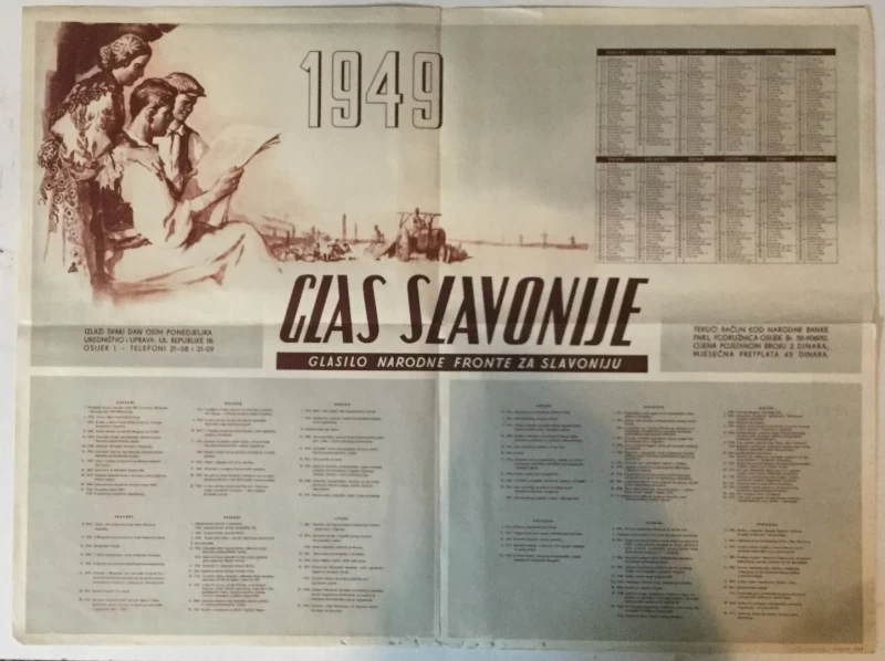 Plakat kalendar za 1949. godinu Glas Slavonije
