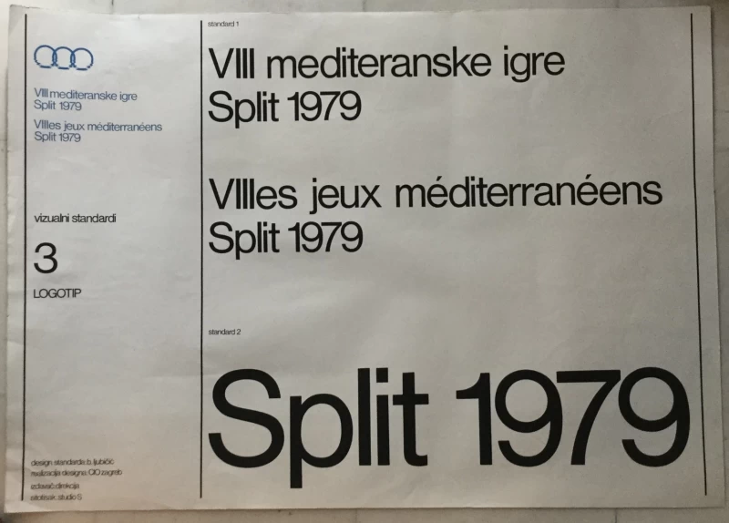 Nepoznati autori: Plakat Mediteranske igre u Splitu 1979., Vizualni standardi 3, Logotip, Autor Boris Ljubičić