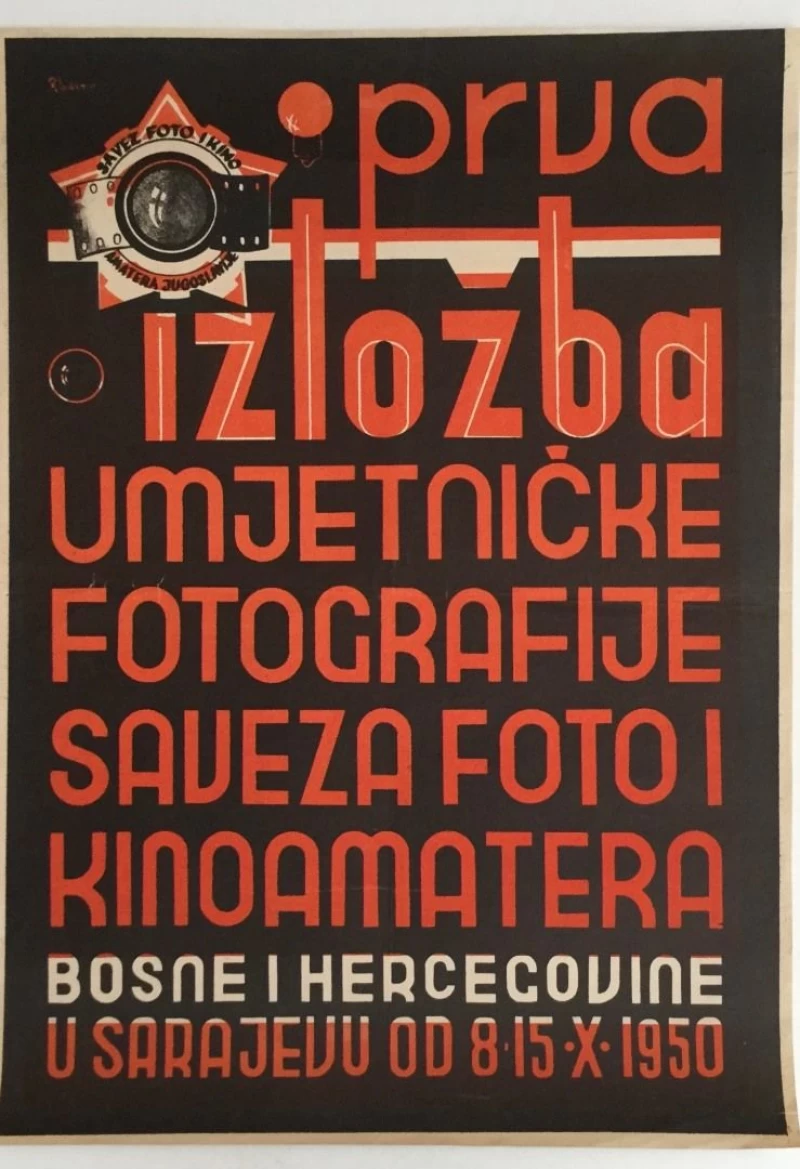 PRVA IZLOŽBA UMJETNIČKE FOTOGRAFIJE SAVEZA FOTO I KINO AMATERA BOSNE I HERCEGOVINE , PLAKAT ,AUTOR SIRIMIĆ